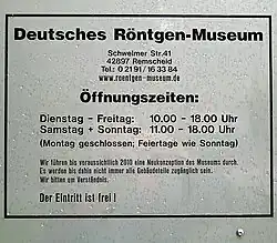 - ↑ «About Röntgen». Röntgen Memorial. Consultado em 14 de junho de 2019
