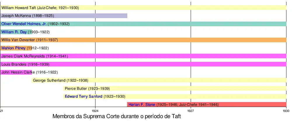 Taft voltou para Yale como professor após deixar a presidência, continuando sua atividade política e trabalhando contra a Primeira Guerra Mundial através da Liga para Reforçar a Paz. Harding o nomeou em 1921 como juiz-chefe. Taft era conservador em questões de negócios, porém durante seu mandato ocorreram avanços nos direitos individuais. Ele renunciou do cargo em fevereiro de 1930 devido problemas de saúde e morreu um mês depois, sendo enterrado no Cemitério Nacional de Arlington. Taft geralmente é avaliado como um presidente mediano em avaliações históricas de ex-presidentes.