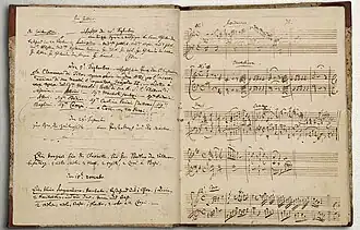Em outros pontos tinha pensamentos bem diversos do pai. Apenas um adolescente de catorze anos pôde ironizar em carta à irmã as visões de Leopold sobre estética, que se inclinavam aos modelos estabelecidos por Gellert e Wieland e que buscavam para a arte uma função social moralizante e nobilitante dentro de uma expressão austera e virtuosa. Essas opiniões já lhe pareciam antiquadas, e em carta ao pai em torno de 1780 defendeu a validade da opera buffa e rejeitou sua conformação aos ditames da opera seria.[47] Também não se nota em sua correspondência um amor às outras artes além da música — sequer eram citadas e seu inventário não incluía uma única pintura — nem o atraía especialmente a paisagem natural. Não parece ter sido um grande leitor, mas conhecia em alguma medida Shakespeare, Ovídio, Fénelon, Metastasio e Wieland, além de provavelmente ter lido obras sobre história, educação e política, mas muitas dessas leituras aparentemente foram feitas tendo em vista mormente a elaboração de textos para óperas ou canções.[48] Entretanto, sobrevivem rascunhos de duas comédias em prosa de sua autoria, alguns poemas e foi um grande escritor de cartas, cujo conteúdo veicula uma larga variedade de sentimentos e ideias, apresentados de forma profunda e exuberante, que se equiparam em qualidade literária à correspondência dos mais distinguidos escritores de sua época.[49]