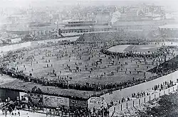 Após dois anos de competição acirrada e ataques de jogadores, as ligas Nacional e Americana fizeram as pazes, e, como parte do acordo, várias duplas de times se enfrentaram para jogos de exibição entre as ligas após a temporada de 1903. Essas séries foram organizadas pelos clubes participantes, como as partidas da Série Mundial de 1880 haviam sido. Um deles igualou os dois vencedores de flâmula — Pittsburgh Pirates, da NL, e Boston Americans (mais tarde conhecido como Red Sox), da AL — naquela que é conhecida como a World Series de 1903, disputada no Huntington Avenue Grounds. O jogo foi acertado com bastante antecedência pelos dois proprietários, já que ambas as equipes eram líderes de suas ligas com uma ampla vantagem. O Boston derrotou o Pittsburgh por 5 a 3, vencendo com a precisão dos arremessos de Cy Young e Bill Dinneen. A Série trouxe muito orgulho cívico para Boston e provou que a nova Liga Americana poderia vencer a Nacional.[6]