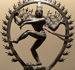 Neste aspecto, Xiva aparece como o rei (raja) da dança (nata). Ele dança dentro de um círculo de fogo, símbolo da renovação e, através de sua dança, cria, conserva e destrói o universo. Nataraja representa o eterno movimento do universo que foi impulsionado pelo ritmo do tambor e da dança.