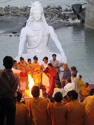 ![]() Xiva (acima) é a divindade primária do xivaísmo. Ritual em Muni ki Reti, Rixiquexe | |