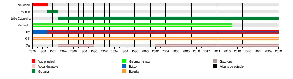 - Zé Pedro – guitarra ritmo e vocais de apoio (1978–2017; até sua morte)
