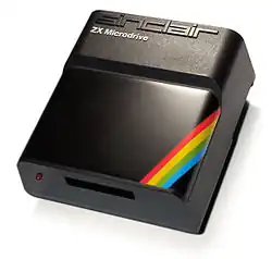 Drive de fita contínua de alta velocidade. As cassetes de fita continham uma fita magnética semelhante às das cassetes VHS mas muito mais fina e com apenas um carretel. Cada 'cassete'(ou cartucho) tinha em média espaço para cerca de 100 Kbytes. Uma característica curiosa era que ao longo do tempo a capacidade bruta aumentava ligeiramente uma vez que a fita ía esticando, evidentemente que a confiabilidade também diminuía. O alto preço das cassetes e uma confiabilidade que não era muito boa impediu este periférico de se tornar mais popular. A Interface 1 permitia que se ligassem até 8 Microdrives através de uma pequena peça de plástico rígida (conector) que ligava um microdrive ao microdrive seguinte.