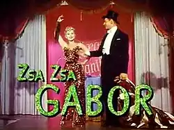 Zsa Zsa Gabor (AFI: [ˌʒɑːʒɑː ˈɡɑːbɔːr]; nascida Sári Gábor; Budapeste, 6 de fevereiro de 1917 – Los Angeles, 18 de dezembro de 2016)[5] foi uma atriz e socialite húngara-estadunidense. Em 1936, ganhou uma competição de beleza em seu país. Apareceu em diversos filmes como Moulin Rouge (1952), Lili (1953), e em muitos outros. Fez também teatro e televisão nas séries Batman (1968), The Fresh Prince of Bel-Air (1991), entre outros.[6] Foi a última entre as irmãs (e também atrizes) Magda Gabor e Eva Gabor a falecer.