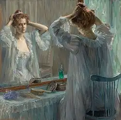 - “Ela, Kate Croy, esperava a vinda do pai, mas ele se fazia esperar, sem a menor consideração, e houve momentos em que a moça exibiu par si mesma, no espelho acima do console da lareira, um rosto decididamente pálido, com uma irritação que a levou a ponto de ir embora sem vê-lo.”