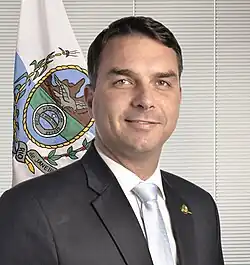 Flávio Bolsonaro (Rio de Janeiro, 30 de abril de 1981) é deputado estadual do Rio de Janeiro desde 2003, presidente da Comissão Especial de Planejamento Familiar. Flávio Bolsonaro é filho do presidente Jair Bolsonaro.