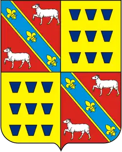 BRAZÃO DE ARMAS: Escudo esquartelado: no primeiro, as armas dos Carneiros, — em campo de góles uma banda azul coticada de oiro e carregada de tres flôres de liz de mesmo metal, entre dois carneiros de prata armados de oiro; no segundo, as armas dos Cunhas. — em campo de oiro nove cunhas de azul em tres palas; e assim os alternos.