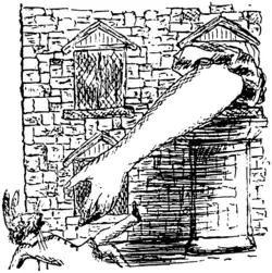 Ela esticou a chaminé da melhor forma possível e esperou até ouvir um pequeno animal (ela não conseguiu adivinhar o tipo) se arrastando e lutando na chaminé perto e acima dela. Então, dizendo à si mesma: “Esse é o Bill”. Ela deu um chute e esperou para ver o que aconteceria.