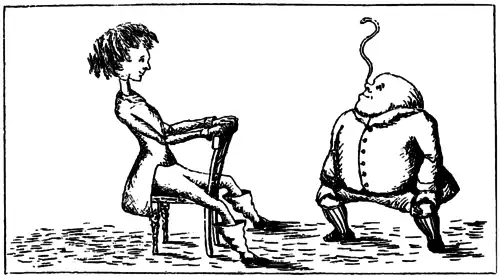 Por algum tempo eles olharam um para o outro em silêncio: por fim a lagarta tirou o narguilé da sua boca e languidamente se referiu à ela: