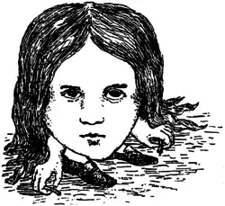 Um filhote enorme estava olhando para ela com grandes olhos redondos e esticando uma pata tentando alcançá-la: “Pobrezinho!”, disse Alice num tom persuasivo. Ela tentou assobiar para ele, mas ela estava terrivelmente alarmada e enquanto ela pensou que ele poderia estar com fome, o que o faria devorá-la apesar de tentar convencê-lo do contrário. Mal sabendo o que ela fez, pegou um pedaço de madeira e segurou para o filhote: ele pulou pelo ar com todas as suas patas sem tocar no chão e com um grito de prazer correu pela madeira e fez parecer que se preocupou: então Alice foi para trás de um grande cardo para evitar ser atropelada e, no momento que ela apareceu no outro lado, o filhote fez outro dardo na vara e ficou de ponta cabeça na pressa de pegá-lo. Então Alice, achando que era parecido como brincar com um cavalo de carroça e esperando a todo momento ficar embaixo de suas patas, correu pelo cardo outra vez. Então o filhote começou uma série de curtos encargos contra a vara, correndo um pouco para frente e bastante para trás e latindo com vontade por enquanto até que por fim ele se sentou, ofegante, com sua língua pendurada para fora da boca e seus grandes olhos meio fechados.