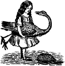 Alice achou que nunca havia visto um campo de croquet tão curioso em toda sua vida: estava cheio de cumes e sulcos. As bolas de croquet eram ouriços vivos, os malhos avestruzes vivas e os soldados tinham de se dobrar e ficar