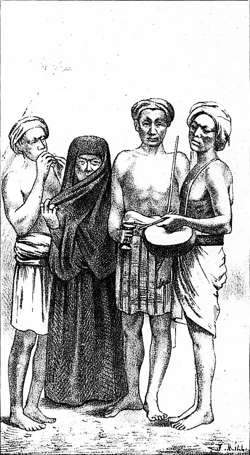 Os padres são, na maior parte, cingulezes, raça menos escura que a dos bedahs, menos selvagem que esta e vivendo em sociedade.