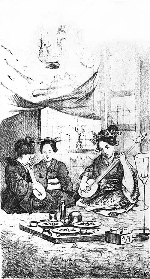 O chão é forrado com delicadas e espessas esteiras, no que os japonezes tem o maior esmero; assim, fomos obrigados com receio do enlamaçal-as, deixar nossos botins á porta; e isto é uso no Japão.