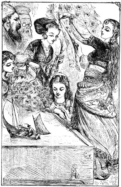 Possuía uma torneira no fundo para saída da água, quando começasse a juntar bolor, e dois servidores podiam rapidamente enchê-la em meia hora. Nela eu costumava remar para minha própria diversão, bem como diversão da rainha e de suas damas, que se achavam entretidas com minha habilidade e minha agilidade. Algumas vezes eu levantava a vela, e assim eu ficava somente dirigindo, enquanto as damas criavam tempestades com seus leques, e quando elas ficavam cansadas, algumas de suas acompanhantes sopravam a vela para que o barco velejasse para a frente, enquanto eu mostrava minha arte dirigindo ora a estibordo[2], ora a bombordo[3], como preferisse. Quando me cansava, Glumdalclitch sempre me levava de volta o meu barco para o seu gabinete, e me pendurava num prego para secar.