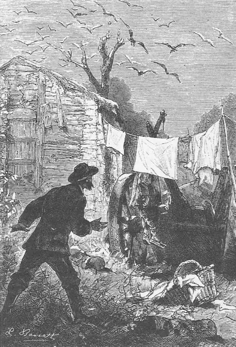 Mal se soube o caso, — era á noite, á hora em que todo o acampamento estava em plena animação depois do jantar, — logo uma multidão furiosa se dirigiu ao botequim do culpado, saqueou-o de alto a baixo, lançando-se fogo em seguida, e de certo teriam pendurado o yankee na forca que alguns homens de boa vontade já tratavam de arranjar, se por felicidade d'elle não chegasse uma duzia de policemen a cavallo ainda a tempo de o salvarem, levando-o preso.