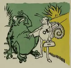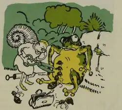 O principe concedeu a graça pedida e ordenou que chamassem o doutor Caramujo para extrahir as pedras. Veiu o doutor co a sua maleta de cirurgião. Examinou o sapo empanturrado, apalpou, ergueu os oculos para a testa e disse: