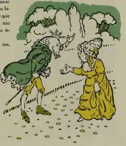 — E elle muito merece o amor da menina, porque não existe no mundo inteiro principe mais valoroso. Meu desejo é que se casem porque do contrario o principe é capaz de engraçar-se d'alguma barata e o reino soffreria a vergonha de ser governado por uma rainha que volta e meia perde a casca...