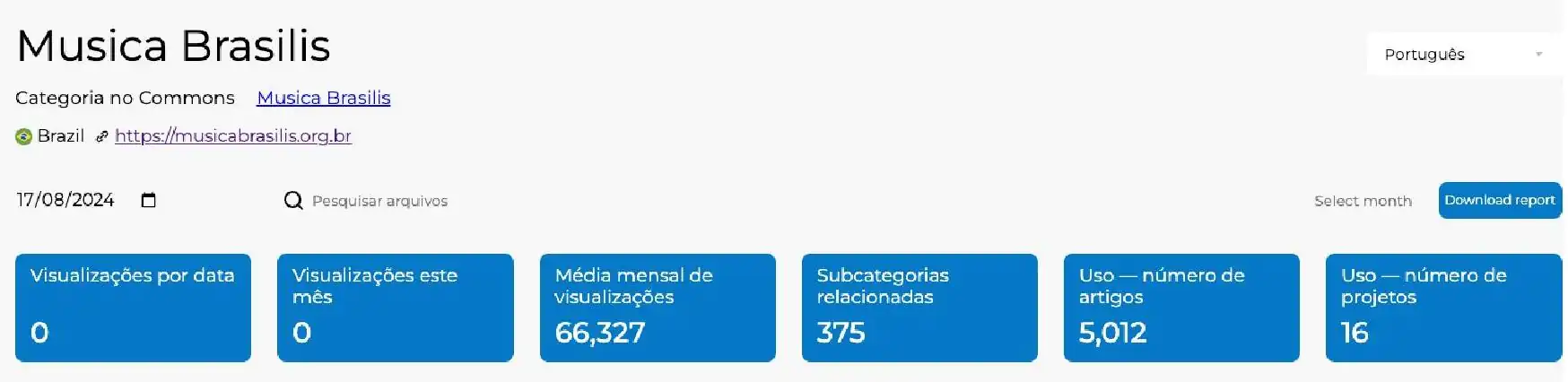 FIGURA 5 Dados do GLAM Musica Brasilis em 18 de agosto de 2024