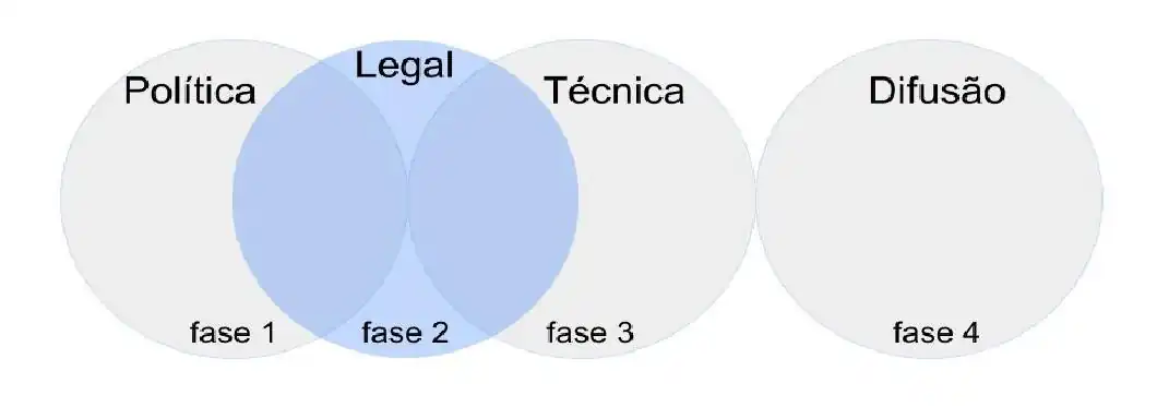 A segunda fase (legal) permeia as fases 1 e 3, envolvendo a certificação da parceria por uma equipe de voluntários (Volunteer Response Team, ou VTR) da comunidade wiki em português (junto à fase 1) e a análise da possibilidade de licenciamento livre dos acervos a serem carregados (junto à fase 3). A terceira fase (técnica) envolve a criação de uma infraestrutura administrativa – página da parceria na Wikipédia e categoria de controle no Wikimedia Commons – e os ciclos de recebimento de lotes de arquivos digitalizados e metadados, wikificação e carregamento. Nessa fase, a instituição GLAM digitaliza seus acervos, organiza seus metadados e os envia para o WMB, que compatibiliza as informações e os metadados com os projetos Wikimedia Commons e Wikidata e realiza seu carregamento em massa.