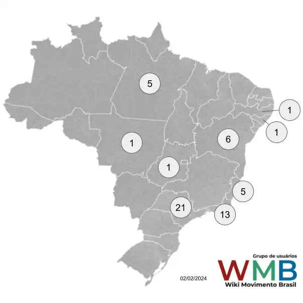 - ↑ Wikimedia Commons, CC BY-SA 4.0. Entre maio e outubro de 2023, foram assinadas outras oito parcerias: quatro no Pará, duas no Rio de Janeiro, uma no Mato Grosso e uma em São Paulo.