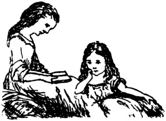 “Tenho certeza que não sou a Gertrude, já que o cabelo dela tem cachos longos, ao contrário dos meus—e tenho certeza de que não posso ser a Florence, já que sei várias coisas e ela, oh! Mal sabe de nada! Além de tudo, ela é ela e eu sou eu, e—minha nossa! Como isso é confuso! Vou tentar ver se ainda sei das coisas que sempre soube. Vamos começar: quatro vezes cinco é doze, quatro vezes seis é treze e quatro vezes sete é catorze—minha nossa! Assim nunca chegarei nos vinte! Mas a Tabela de Multiplicação não vale—vamos tentar Geografia. Londres é a capital da França, Roma é a capital de Yorkshire e Paris—minha nossa! Caramba! Está tudo errado. Tenho certeza disso! Devo ter sido trocada pela Florence! Vou tentar recitar “Como é que o pequeno”. Ela cruzou suas mãos no colo e começou, mas sua voz soava rouca e estranha e as palavras não eram as mesmas de antes: