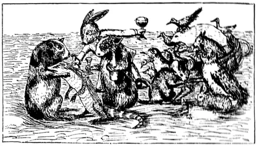 A primeira coisa foi um coro de “Ai vai o Bill!” seguida pela voz do coelho: “Você ai na cerca, pegue-o!”. Então silêncio, outra confusão de vozes: “Como vai, velho amigo? O que aconteceu? Diga-nos.”