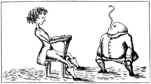 Por algum tempo eles olharam um para o outro em silêncio: por fim a lagarta tirou o narguilé da sua boca e languidamente se referiu à ela: