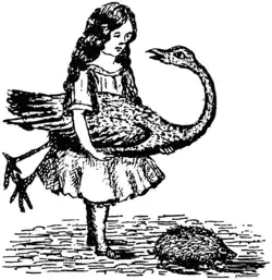 A primeira dificuldade de Alice foi usar seu avestruz. Ela colocou seu corpo esticado, bem confortável, em baixo