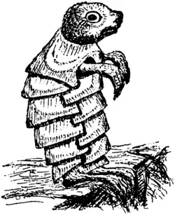 “Quando éramos pequenos,” a Tartaruga Falsa continuou, de forma mais calma, mas ainda soluçando de vez em quando, “nó fomos para a escola no mar. O professor era uma velha Tartaruga—nós os chamávamos de Cágado—"
