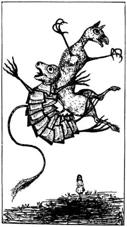 O Grifo sentou e esfregou seus olhos. Então olhou a Rainha até que ela estivesse fora de vista. Então ele riu: “Que divertido!” disse o Grifo, meio para si, meio para Alice.