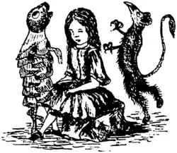 Com isso todo o baralho subiu no ar e voou até ela. Alice deu um pequeno grito de medo e tentou se livrar deles, encontrando-se deitada no morro com sua cabeça no colo de sua irmã que estava gentilmente limpando algumas folhas que haviam caído em seu rosto.