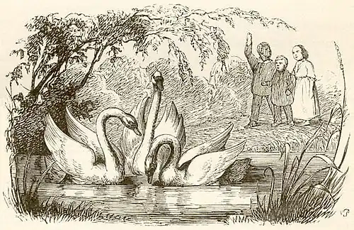 ![]() Autor:Hans Christian Andersen O verão havia chegado e o tempo estava muito agradável no campo, a plantação de milho se vestia de dourado, a aveia de verde, e as pilhas de feno, amontoadas nas pradarias, se revestiam de beleza. A cegonha andava por todos os lados com suas pernas longas e avermelhadas, tagarelando no desconhecido idioma egípcio, que ela havia aprendido com a sua mãe. Os milharais e as campinas eram rodeados por imensas florestas, no meio das quais podiam se ver riachos profundos. De fato, era muito agradável caminhar pelos campos. E num recanto ensolarado, ficava uma fazenda muito antiga e aconchegante às margens de um rio muito fundo, e entre a casa e a região dos rios, folhas de bardanas cresciam livremente, indo até os lugares mais altos, e debaixo da mais alta de todas elas, uma criança podia ficar de pé. O lugar era tão selvagem como o núcleo mais central de uma espessa floresta. Nesse recanto confortável uma pata repousava em seu ninho, esperando chocar uma nova ninhada; e já estava começando a se entediar dessa tarefa, porque há muito tempo que alguns pequeninos já haviam saído da casca, e ela raramente recebia uma visita. As outras patas preferiam ficar nadando no rio, do que se arriscarem e subirem suas margens escorregadias, e ficarem sentadas debaixo de uma folha de bardana, para se distrairem, jogando conversa fora com ela. Finalmente uma casca de abriu, e depois outra, e de cada ovo saía uma criaturinha viva que levantava a cabecinha e dizia, "Pip, pip." "Quack, quack," respondia a mãe, e então, todos eles grasnavam tão forte quanto podiam, e ficavam olhando por todos os lados para as imensas folhas verdes. A mãe deles deixava que eles olhassem o quanto quisessem, porque ela dizia que o verde fazia bem para os olhos. "Como este mundo é grande," diziam os patinhos, porque eles haviam descoberto que havia muito mais espaço ainda do que eles tinham tido quando eles estavam dentro da casca do ovo. "Vocês estão achando que isto aqui é o mundo inteiro?" perguntou a mãe; "Esperem até que vocês conheçam o jardim; ele se estende muito além dos campos da casa do padre, mas eu jamais me arrisquei a ir tão longe. Todos já estão fora da casca?" continuou ela, esforçando-se para se levantar; "Não, me parece que o ovo maior ainda está lá. Fico pensando quanto tempo vou ter de esperar, já estou cansada de ficar aqui;" e ela voltou a se sentar no ninho. "E então, como é que a senhora está passando?" perguntou uma velha pata, que lhe fazia uma visita. "Um ovo ainda não está chocado," disse a pata, "está demorando para partir. Mas dê só uma olhada nos outros, eles não são mesmo os patinhos mais lindos que você já viu? Eles são a cara do pai deles, aquele ingrato, que nunca vem visitá-los." "Permita que eu dê uma olhada no ovo que ainda não se quebrou," disse a pata velha; "Tenho certeza de que é um ovo de peru. Uma vez me convenceram a chocar alguns deles, e depois de todo o cuidado e preocupação que tive com os pequeninos, eles tinham medo de água. Eu grasnei e cacarejei, mas não adiantou nada. Eu não poderia permitir que eles se arriscassem. Quero dar uma olhada no ovo. Sim, esse é um ovo de peru; ouça o que estou dizendo, deixe-o onde está e ensine os outros pequeninos a nadar." "Acho que vou ficar sentada em cima dele um pouquinho mais," disse a pata; "como já faz tempo que estou sentada aqui, mais alguns dias não me farão mal." "Faça como quiser," disse a pata velha, e foi embora. Até que um dia o ovo grande se rompeu, e um pequenino saiu para fora e gritava, "Pip, pip." Ele era muito grande e feio. A pata então, se assustou com ele e exclamou, "Ele é muito grande e não se parece em nada com os outros. Será que ele é mesmo um peru?. Logo vamos descobrir isso, quando tiver que entrar na água. Ele vai ter que entrar, nem que eu mesma tenha de empurrá-lo." No dia seguinte o tempo estava ensolarado, e o sol brilhava forte sobre as folhas verdes de bardana, então, a mamãe pata levou os seus filhotinhos até uma pequena lagoa, e saltou para dentro dela espirrando água. "Quack, quack," gritava ela, e um após o outro os pequenos patinhos saltavam para dentro da água. A água cobria a cabecinha deles, mas num instante eles botavam a cabecinha para fora, e nadavam pra cá e pra lá despreocupadamente chapinhando debaixo da água com suas patinhas com muita facilidade, e o patinho feio também havia entrado na água e nadava com eles. "Oh," disse a mãe, "ele não é um peru; ele sabe bem usar suas perninhas, e ele se porta com muita elegância! Ele é meu filho sim, e ele não é tão feio assim, se você olhar bem. Quack, quack! venha aqui com a mamãe, quero levar você para te conhecerem, e quero também apresentá-lo lá no pátio da fazenda, mas você precisa ficar bem pertinho de mim ou alguém poderá pisar em você; e, além de tudo, tenha cuidado com o gato." Quando eles chegaram no pátio da fazenda, a algazarra era geral, duas famílias estavam brigando por causa da cabeça de uma enguia, que, no final das contas, acabou sendo levada pelo gato. "Vejam, crianças, como são as leis do mundo," disse a pata mãe, enquanto afiava o bico, pois ela teria gostado de ter ficado com a cabeça da enguia para ela. "Se virem!, agora, usem suas pernas, quero ver como vocês se comportam direitinho. Vocês devem baixar suas cabeças educadamente para aquela pata velha que vem ali; ela nasceu em berço de ouro, e é de descendência espanhola, e dizem, que ela é muito rica. Vocês perceberam que ela carrega uma fita vermelha amarrada na perna dela, esse é um comportamento muito especial, e uma honra muito grande para uma pata; isso significa que todos devem ter muito respeito por ela, e que ela é admirada tanto pelos humanos como pelos animais. Vamos embora, agora, cuidado com suas patinhas, um pato bem educado os mantém bem abertos, assim como o papai e a mamãe estão fazendo, agora, abaixem 