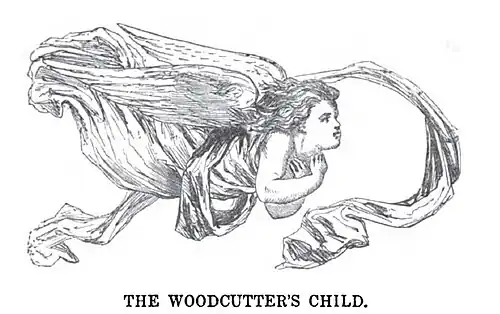 ![]() ou A filha do lenhador ![]() — “Eu sou a Virgem Maria, mãe do menino Jesus. Você é pobre e necessitado, traga a tua filha para mim, eu vou levá-la comigo e serei a mãe dela, e cuidarei dela.” O lenhador obedeceu, trouxe a sua filha, e a deu para a Virgem Maria, que a levou com ela para o céu. Lá, a criança passava bem, comia pães doces, e bebia leite com açúcar, e suas roupas eram de ouro, e os anjinhos brincavam com ela. E quando ela tinha quatorze anos de idade, a Virgem Maria a chamou um dia e disse: “— Querida filhinha, eu preciso fazer uma longa viagem, então, e ficarão sob tua guarda as chaves das treze portas do céu. Doze destas você poderá abrir, e contemplar toda a glória que há dentro delas, mas a décima terceira chave, que é esta que está aqui, você não deverá abrir. Se você abrir esta porta, ele trará muita infelicidade para você.” A garota prometeu ser obediente, e quando a Virgem Maria saiu, ela começou a examinar as habitações do reino dos céus. Todo dia ela abria uma delas, até que ela completou a volta com as doze chaves. Em cada uma delas havia um dos Apóstolos cercado por uma grande luz, e ela se regozijava diante de tanto brilho e de tanto esplendor, e os anjinhos que sempre a acompanhavam ficavam felizes com ela. Então, a porta proibida era a única que faltava, e ela ficou muito curiosa em saber o que poderia estar oculto dentro dela, e disse para os anjos: — “Não vou abrir essa porta, nem entrar dentro dela, mas eu irei abri-la só um pouquinho para ver através da abertura.” — “Oh não,” disseram os anjinhos, “isso seria um pecado. A Virgem Maria proibiu isso, e isso poderia causar uma grande infelicidade para você.” Então, ela ficou em silêncio, mas o desejo em seu coração era maior que a própria vontade, e isso a corroía, e a atormentava, e não deixava que ela descansasse. E uma vez, quando todos os anjos haviam saído, ela pensou: — “Agora, eu estou sozinha, e eu poderia dar uma olhadela. Se eu fizer isso, ninguem nunca ficará sabendo.” Ela procurou a chave, e quando ela a pegou em sua mão, ela colocou na fechadura, e quando ela enfiou a chave na fechadura, ela a girou. Então, a porta se abriu, e ela viu lá dentro a Trindade sentada no meio de um grande fogo e com grande esplendor. Ela ficou lá por algum tempo, e olhava para tudo com assombro, então, ela tocou um pouco a luz com o seu dedo, e o seu dedo ficou coberto de ouro. ![]() Pouco tempo depois a Virgem Maria retornou de viagem. Ela chamou a garota diante dela, e pediu para que a garota devolvesse as chaves do céu. Quando a menina havia lhe dado o molho de chaves, a Virgem olhou os olhos dela e perguntou: — “Você abriu a décima terceira porta também?” — “Não,” ela respondeu. Então, ela pôs a mão no coração da garota, e viu que o coração da menina batia muito forte, e percebeu imediatamente que ela tinha desobedecido as suas ordens e tinha aberto a porta proibida. Então, ela perguntou novamente: — “Tens certeza de que não fizeste isso?” — “Sim,” disse a garota pela segunda vez. Então, ela viu o dedo que tinha ficado de ouro ao tocar o fogo do céu, e percebeu que a garota tinha pecado, e perguntou pela terceira vez. — “Não fizeste mesmo isso?” — “Não,” disse a garota pela terceira vez. Então, a Virgem Maria disse: — “Você me obedeceu, e além disso, você mentiu para mim, portanto, você não é mais digna de ficar no céu.” Nesse momento, a garota caiu em sono profundo, e quando ela acordou, ela estava lá em baixo na Terra, e no meio de um deserto. Ela quis gritar, mas a sua voz não saía. Ela pulava e queria correr, mas, para onde quer que ela se virasse, era detida continuamente pelas cercas de espinho que ela não conseguia atravessar. No deserto, onde ela fora aprisionada, havia uma árvore oca, e esta árvore oca passou a ser a casa dela. Diante disto, quando a noite chegou, ela se arrastou até a árvore e ali ela dormiu. Ali, também, ela encontrou abrigo contra a tempestade e contra a chuva, mas essa era uma vida infeliz, e ela chorou amargamente quando ela se lembrava de como ela tinha sido feliz no céu, e de quando os anjinhos brincavam com ela. Raízes e frutas selvagens eram tudo o que ela tinha para comer, e onde quer que ela fosse era isso que ela procurava. No outono, ela apanhava as castanhas e as folhas que caíam e as levava para o buraco. Comia as castanhas como alimento no inverno, e quando a neve e o gelo chegaram, ela se arrastava por entre as folhas como animal abandonado para que não morresse congelada. Não se passou muito tempo e suas roupas estavam todas rasgadas, e um pedacinho após o outro foram caindo aos poucos. No entanto, assim que o sol voltava a brilhar e a aquecer, ela saía e ficava sentada em frente da árvore, e os seus cabelos cobriram todo o seu corpo como se fosse uma manta. ![]() Ele ficou parado e olhou para ela todo admirado, então, ele falou com ela e disse: — “Quem é você? Porque você está sentada aí no deserto?” Mas ela não respondeu, porque ela não conseguia abrir a boca. O rei continuou, — “Você irá para o castelo comigo?” Então, ela mexeu um pouco com a cabeça. O rei a pegou nos braços, levou-a até o cavalo, e foi com ela para casa, e tendo chegado no castelo real, ele providenciou para que a vestissem com belos vestidos, e deu a ela todas as riquezas que ele tinha com abundância. Embora ela não pudesse falar, ela era, no entanto, tão bela e encantadora que ele começou a se apaixonar por ela de todo o coração, e pouco tempo depois ele se casou com ela. Um ano ou mais havia se passado e a rainha ficou grávida e teve um filho. Então, a Virgem Maria apareceu para ela à noite, quando ela estava dormindo sozinha, e disse: — “Se disseres a verdade e confessares que tu abriste a porta proibida, eu abrirei a tua boca, e tu voltarás a falar, mas se perseverares no pecado, 