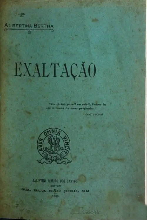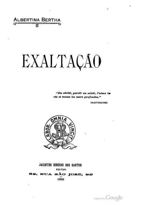 “Solicitando do Jornal a inserção, nas suas columnas de honra, dos dous capitulos do romance Exaltação, escripto por D. Albertina Bertha, o meu fim é chamar a attenção para um dos talentos femiminos que mais me tem impressionado.