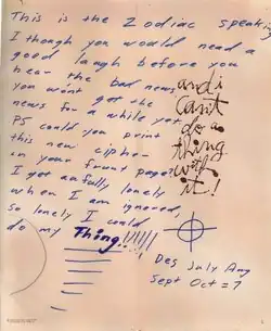 Carta do Assassino do Zodíaco de 8 de novembro de 1969