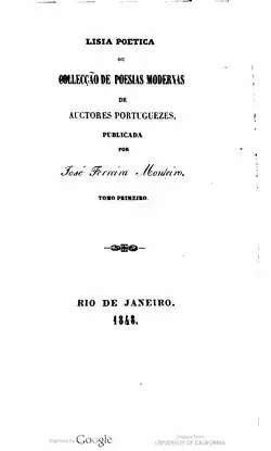 Abandono (O) por L. Ribeiro 22 Amalia, por Antonio Xavier Rodrigues Cordeiro 127 Amor tambem é offerta, por Antonio Augusto Teixeira de Vasconcelos Annel (O) por Luiz Augusto Xavier de Palmeirim 19 Anno (O) novo, por João de Lemos Seixas Castello-Branco 249 Anno (O) velho, por João Baptista d’Almeida Garrett 156 Anno (O) velho, por Antonio Pereira da Costa Jubim 166