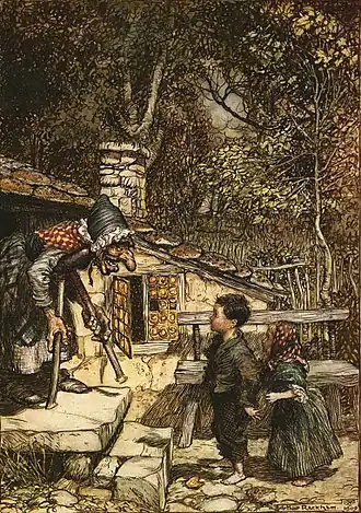 A velhinha apenas fingia ser gentil; ela era na verdade uma bruxa má, que ficava a espera de crianças e que tinha construído a pequena casinha de pão somente para atraí-las para lá. Quando as crianças caíam em seu poder, ela os matava, os cozinhava e os comia, e esse era um dia de banquete para ela. Bruxas tem olhos vermelhos, e não podem ver à distância, porém, têm um olfato apurado como os animais e percebem quando os humanos estão próximos.
