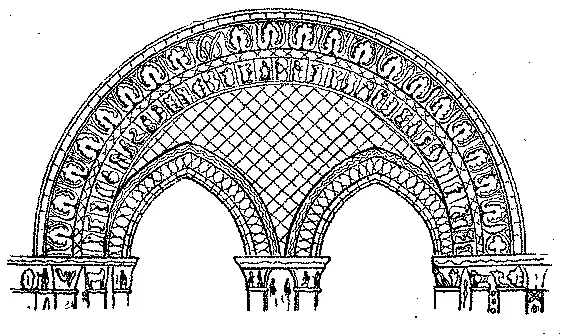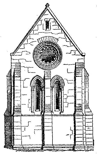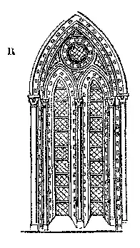 No meado seculo XIII já as janellas se alargaram e se subdividiram em muitas aberturas; o cimo da ogiva da empena pôde então ser ornado com um espelho ou rosaceo, R.