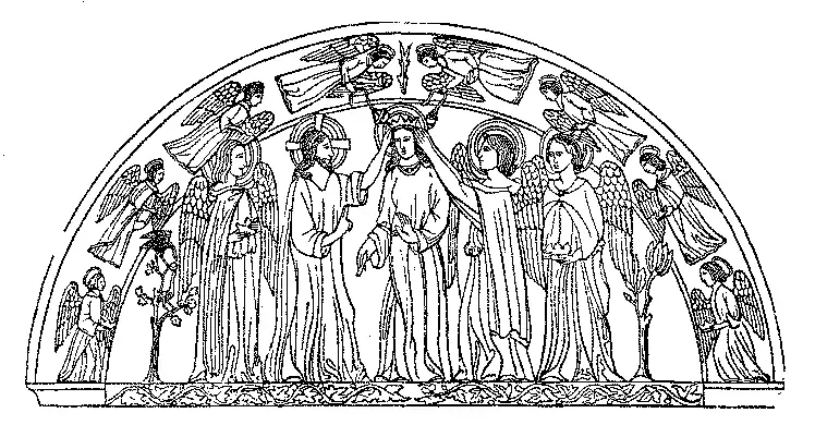 Em alguns portaes estão passos da vida de Jesus Christo, de Nossa Senhora, sua morte, e enterro pelos Apostolos, e a sua Assumpção; differentes assumptos do Antigo Testamento, etc. Algumas vezes nos tympanos representavam Jesus Christo e sua Santissima Mãe, sentados em duas cadeiras quasi iguaes, o que nunca se vê quando o Salvador preside ao dia de Juizo.