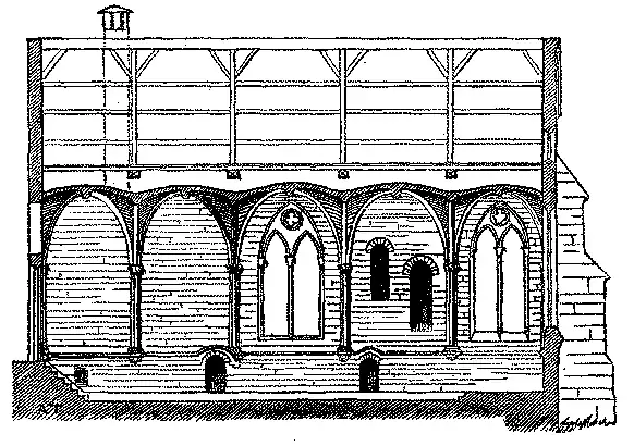 As pequenas igrejas do seculo XIII apresentavam sempre um côro de fórma recta no fundo da nave.