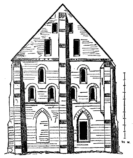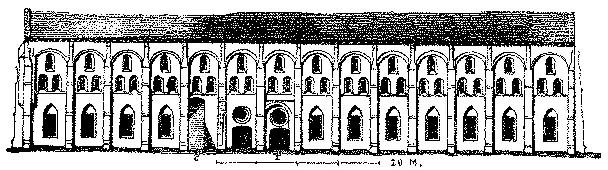 Em muitas partes do sul da França, nas igrejas de transição e do seculo XIII, e até nas maiores não apresentam naves lateraes, mostrando, emquanto ao plano, uma traça particular, da qual trataremos mais adiante. Este plano com uma só nave provém do estylo bysantino; pois a maior parte d'essas igrejas com cupula não tinham naves lateraes e sómente a principal.
