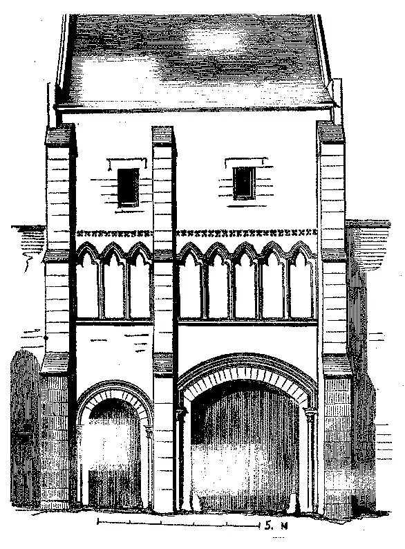 Como especimen de uma entrada de abbadia, quasi sempre composta de duas portas, uma para os carros, a outra para as pessoas, apresentamos a que pertencia ao priorado de S. Vigor, próximo de Bayeux. As portas tinham geralmente um aposento construido por cima d'ellas.