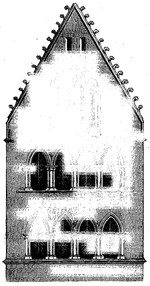 As janellas eram estreitas e esguias: o seu extremo similhava ponta de lança; os inglezes deram-lhes o nome de lancetas;[47] viam-se muitas com bastante altura, e outras de acanhadas porporções, nos monumentos da mesma época.