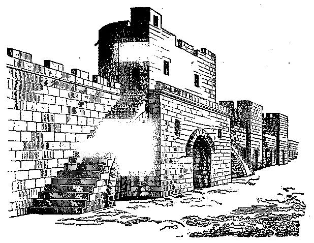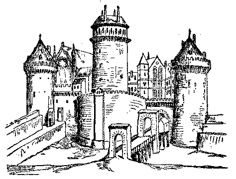 Sabe-se que estas bellas fortificações foram levantadas por Philippe o Ousado (1270-1285); pertencem pois ao fim do seculo XIII.