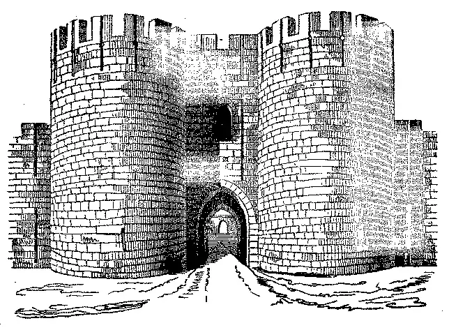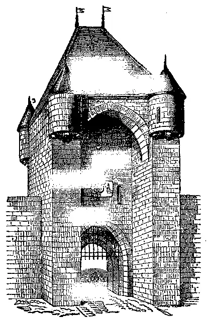 A ponte levadiça, que se abaixava detraz das portas correndo por uma calha aberta na cantaria, tinha por fim multiplicar os obstaculos; fazendo-a mover do aposento que ficava por cima d'esta porta, e aquelles que se deixavam apanhar entre as pontes levadiças podiam ser esmagados da parte superior, ou trespassados de frechas atravez das grades de resguardo.