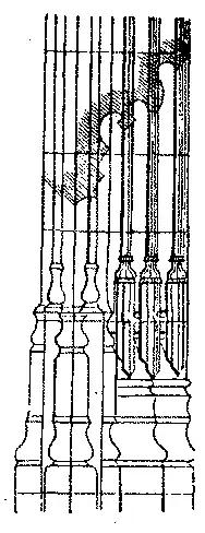 As seleiras firmavam-se em construcções salientes e em falso, das quaes podiamos apresentar muitas variedades, além dos exemplos que damos a pag. 272 [fig. 261].