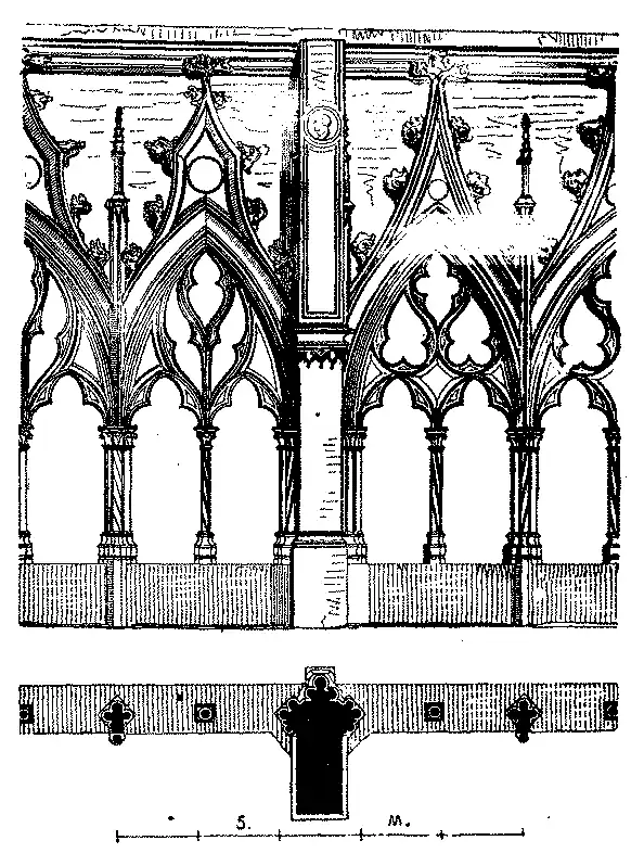 Era do uso fazer-se um ambito gradado, especie de barreira ou separação muito enfeitada, posta entre a nave principal e o côro, sustentando geralmente uma tribuna e a estante onde se lia o Evangelho, como praticavam antes servindo-se do pulpito. As mais primorosas datam do fim do seculo XV, ás barreiras em cantaria que separavam o côro das naves, e que, desde o seculo XIII, já existiam em algumas igrejas; ellas vieram a ser nos seculos XV e XVI de grande riqueza de trabalho e de merecida admiração.