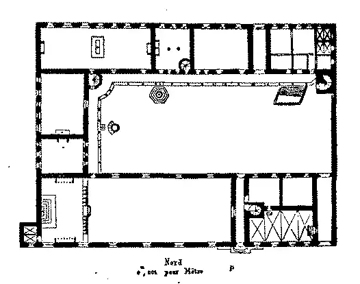 Segundo o plano, que dâmos, comprehender-se-ha a disposição e a reunião d'estas salas. No pateo havia um poço com armação de ferro, tendo uma graciosa corôa sustentada por tres hastes de ferro, e rampas com ornatos arrendilhados, as quaes reunidas ao centro formam um telhado conico.