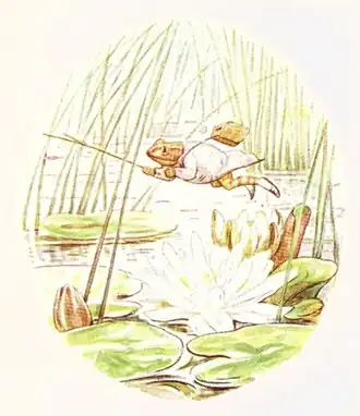 "QUE pena que não fosse um lúcio!”, disse o Sr. Jeremy Fisher. “Perdi minha vara e meu cesto; mas isso não importa muito, pois tenho certeza de que nunca mais ousaria pescar!